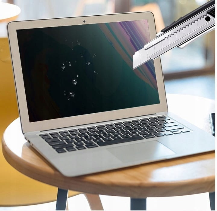 Nasz filtr to proste, ale niezwykle skuteczne rozwiązanie. Obraz pozostaje w pełni widoczny tylko na wprost, a przy kącie powyżej 30 stopni ekran staje się czarnym prostokątem, całkowicie niewidocznym.